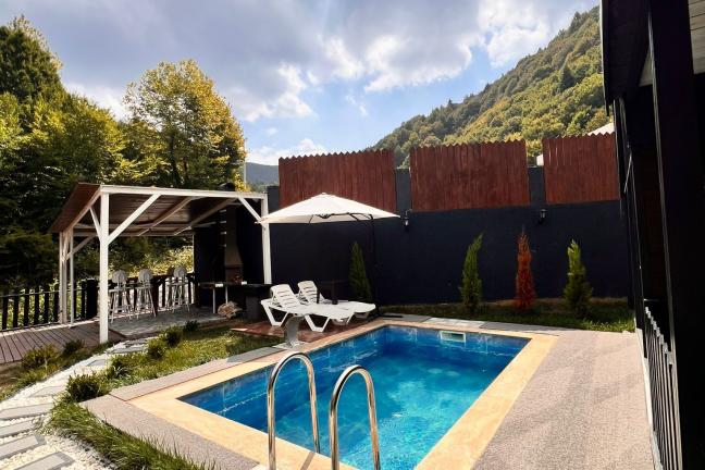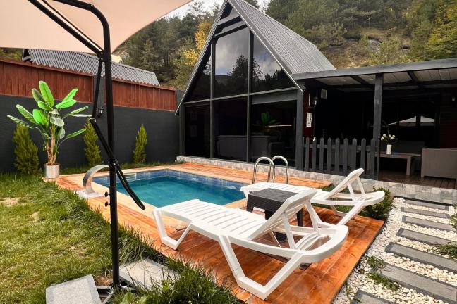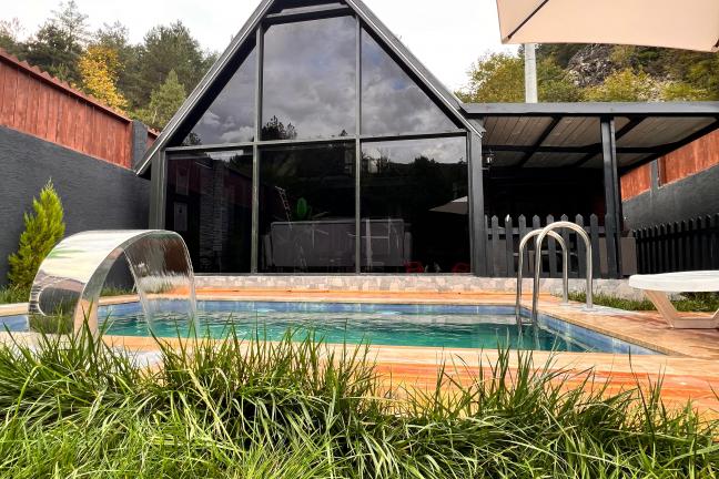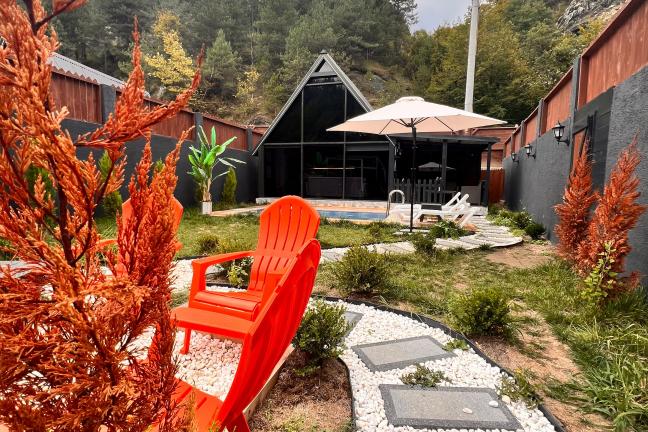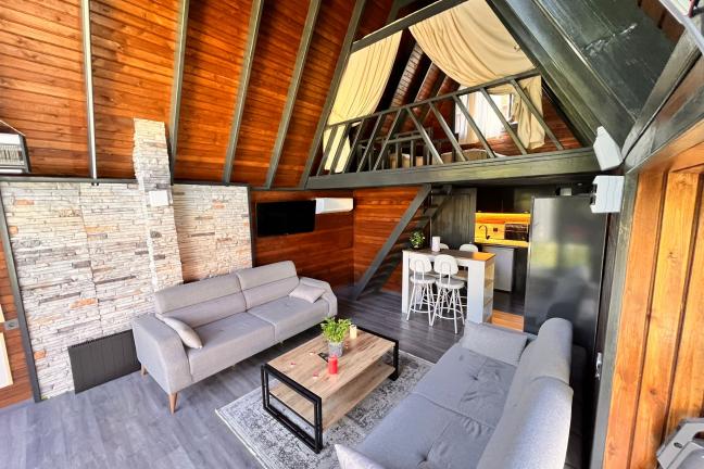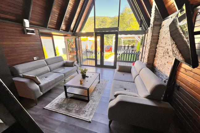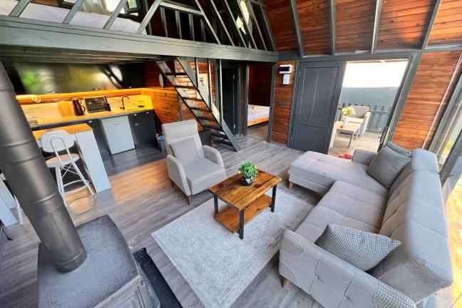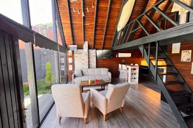 Doğa ile iç içe sıcacık bir yuva için sizleri sıcak havuzumuz, ateş çukurumuz ve barbekümüzle donatılmış 2+1 Modern tasarımıyla dikkat çeken bungalovumuz, konforlu yatakları ve geniş oturma alanıyla rahat bir konaklama sunuyor. Şehir stresinden uzaklaşarak doğanın tadını çıkarmak için rezervasyon yapmayı unutmayınız.